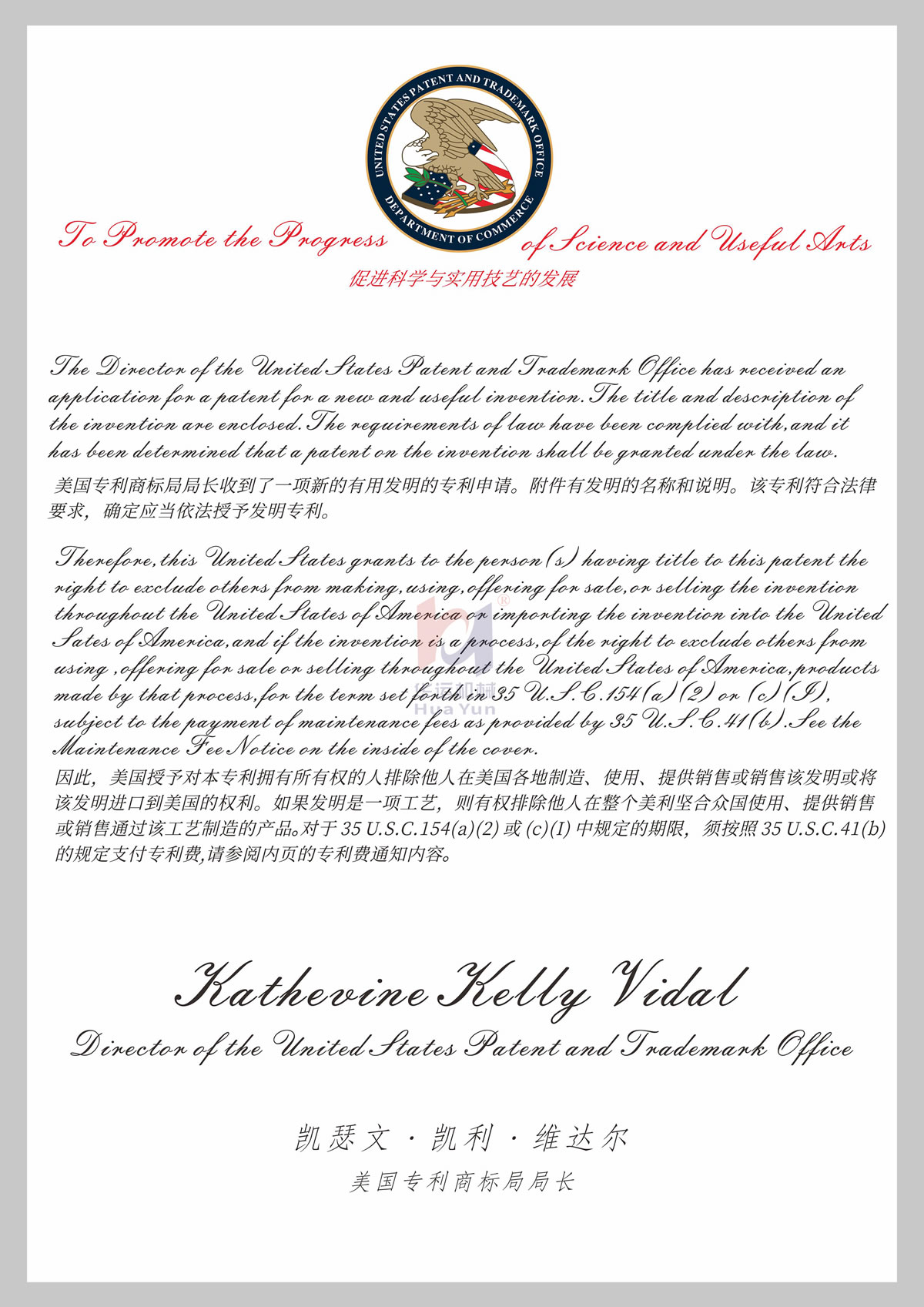 美國專利證書
